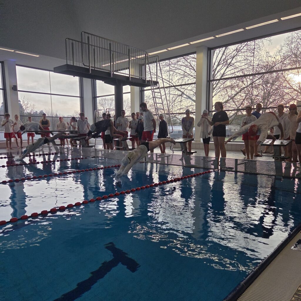 Der Tag war in zwei große Programmpunkte unterteilt: Am Vormittag ging es ins Stadtbad Aschaffenburg, wo bei einem Schwimmwettbewerb mit verschiedenen Staffeln rund um das Rettungsschwimmen sportlicher Ehrgeiz und Können gefragt waren.